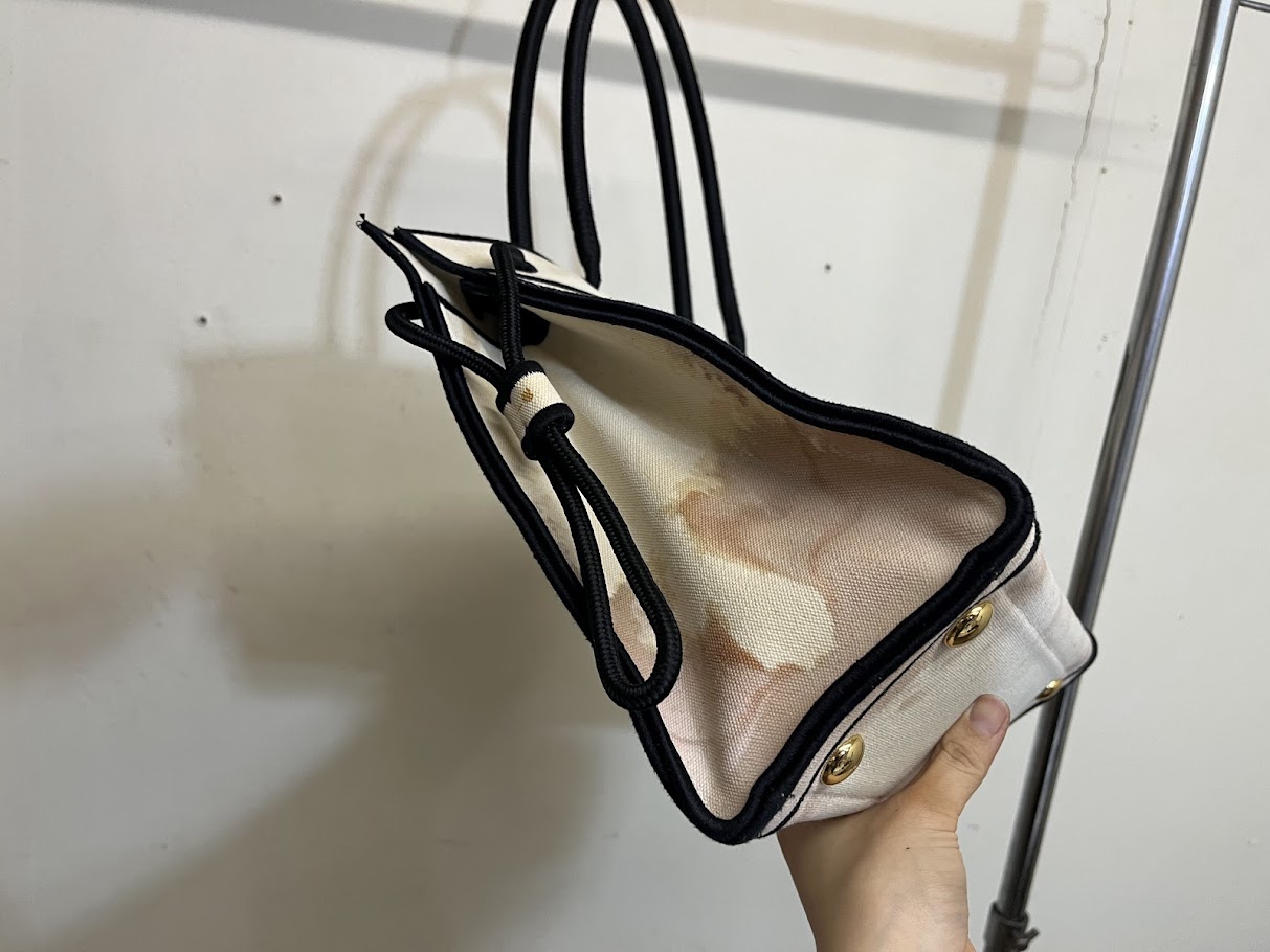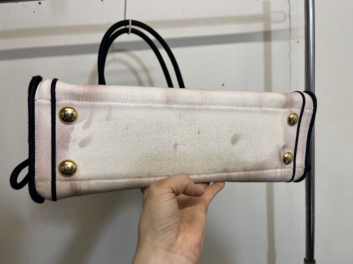 この様な状態のアイテムへの選択肢は、(当店では)最も暗いお色に染め直すブラックカラーチェンジ1択となっております( ー`дー´)キリッツ